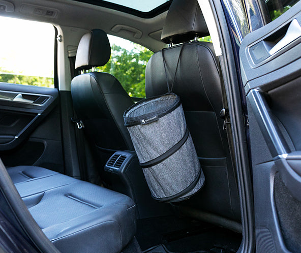 The Pop-Up Trash Can's cylindrical shape holds countless day's worth of waste, making it a must-have addition to your car. Secure it to your vehicle’s floor with the hook and loop closure base or, if you want to free up space, use the adjustable strap to fasten it to the headrest. Plus, it’s collapsible for easy storage when not in use!