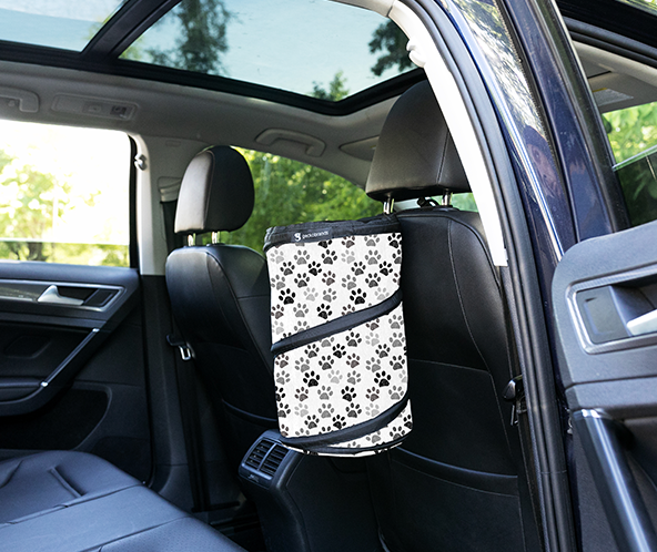 PRODUCT INFO- Hang trash can from headrest using adjustable strap